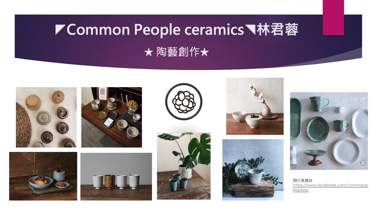 COMMON PEOPLE 始於東部的山海,落腳在北部的喧囂, 生活的軌跡點滴積累在作品的每一處細節。 創作來自於生活中的大小事, 擷取日常的色彩在杯、盤、花器等日常器皿中。 相信平凡的東西最是舒服,也最美, 如同泥土,是雙腳踩著的踏實, 乘載著一步步,靜靜的,不易留心卻也不可或缺。