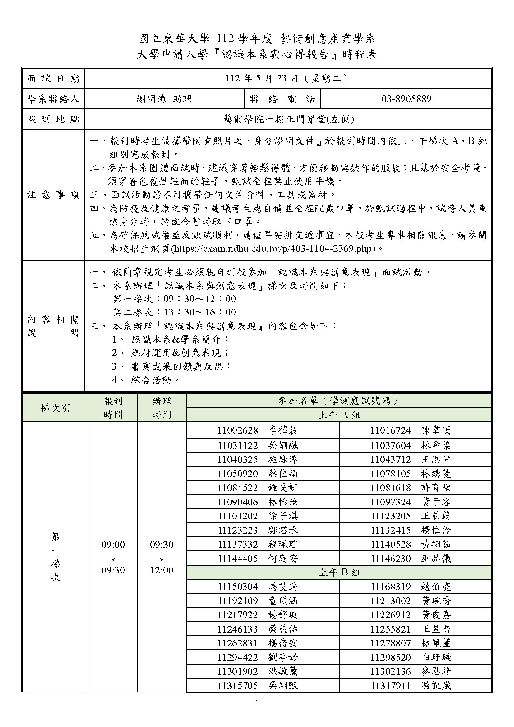 +【招生訊息】112大學申請入學_藝創系第二階段「認識本系與創意表現」專區(時程表、梯次、組別)